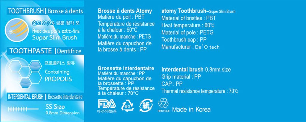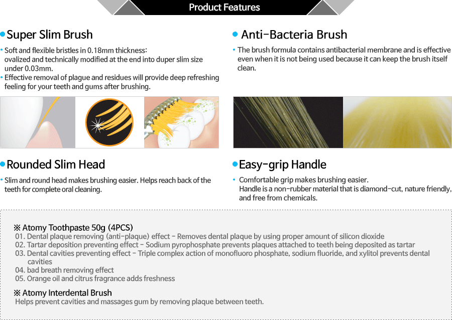 Includes Atomy toothbrush, Atomy toothpaste(50g), Interdental floss.