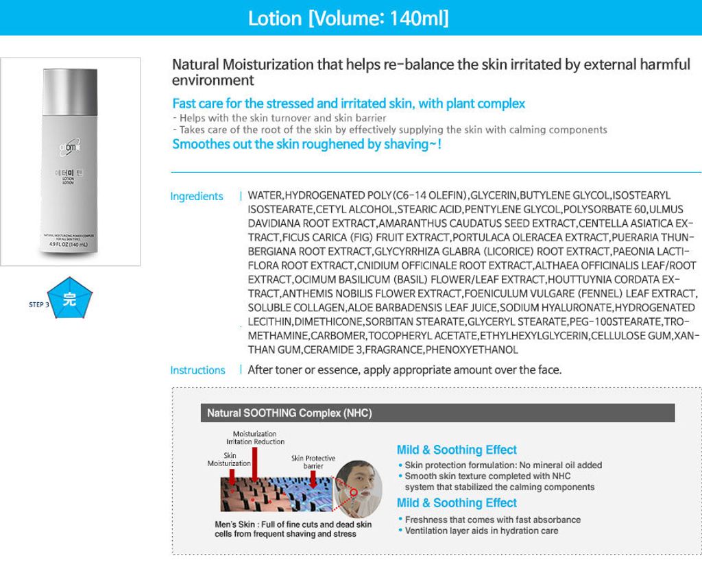 Lotion 140ml For Natural Moisturization that helps re-balance the skin irritated by external harmful environment.